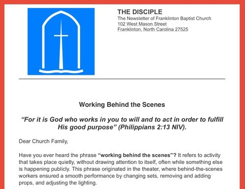 Franklinton Baptist Church is a vibrant community united by faith, fostering worship, discipleship, missions, and fellowship. Empowered by God’s Spirit, members cultivate joyful praise, passionate learning, selfless giving, and earnest witnessing, creating a dynamic and compassionate community.