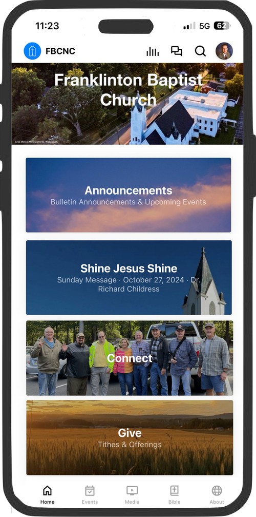Stay connected to the ministries of Franklinton Baptist Church. Stay up to date with church events. Listen or watch the sermons and Bible studies. Make donations and communicate with your church family. Read or listen to the Bible and follow the daily reading plan with the integrated Bible tool. Available in seven translations, two in Spanish.